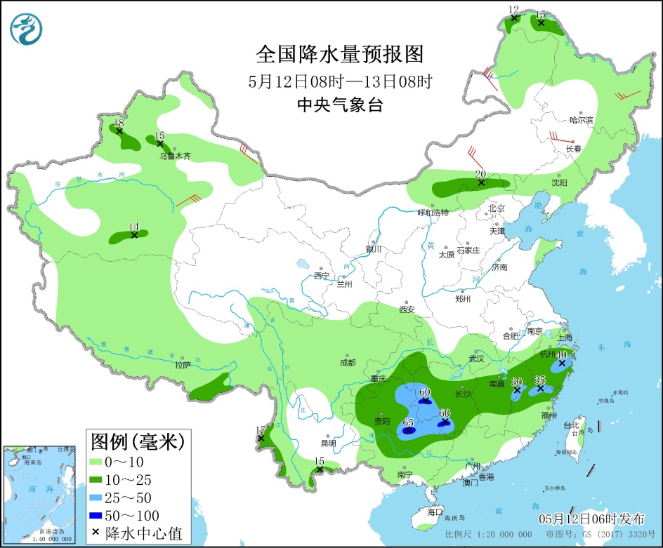 未來三天,長江以南、河北、黑龍江等地的部分地區(qū)有中到大雨,部分地區(qū)有5~7級(jí)風(fēng)。